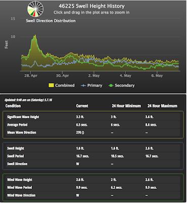 Paddled out at 5:55 am, solo. Tide was dropping from a 3.76’ high at 5:48am. Conditions were clean, with no winds. Torrey Pines Outer Buoy was reporting Significant Wave Height of 3.8' from 200' at 17.5s. Fun session today. Was a little crowded at Middles which was the main peak today. I chose to surf more towards South Peak and caught a handful of fun rights. Waves were chest to head high. Water was comfortable in my short sleeve full. Board ridden: 5’11” Xanadu Pig 2.